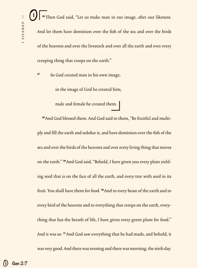 - Go to the next passage (Genesis 1:26-27) and repeat the same steps.