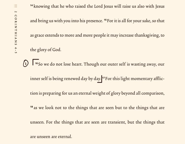- Go to the first passage. (2Cor 4:16)