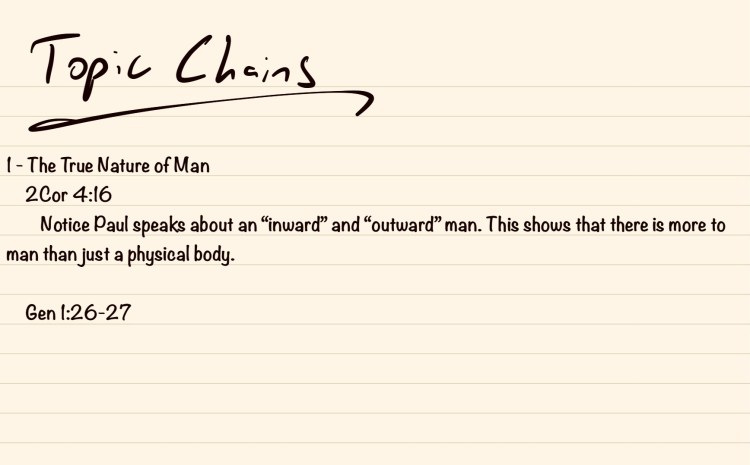 - At each passage there is a point to be made for the topic. This is where your small notebook will come in handy as there generally isn’t enough room to write notes in the margins, even in a wide margin Bible.